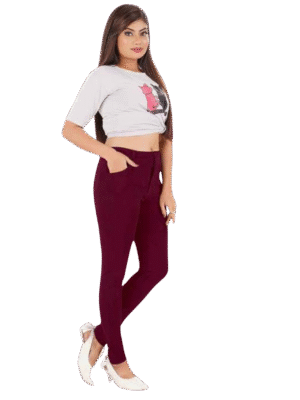 Step up your daily style with the Premium Wine Jagging, made from ultra-stretchable imported fabric. With a high-rise waist, slim-fit design, and functional full pockets, these jaggings combine comfort and elegance—ideal for errands, travel, or everyday wear.
